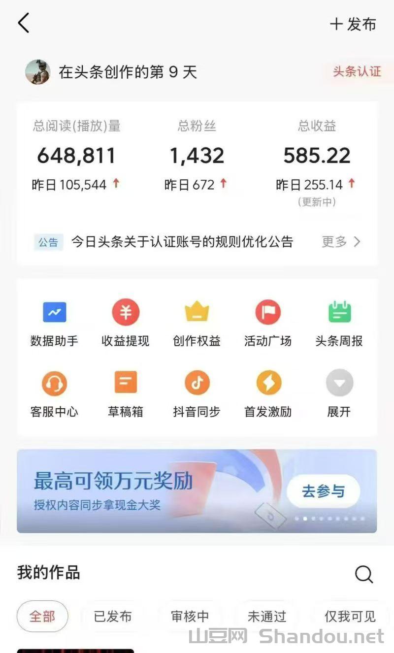 正文 今日头条零撸平台免费提供视频 秒到网 V管理员 /前天/4阅读/0评论 0121 只限安卓今日头条零撸平台免费提供视频,大家记得坚持发视频,平台免费提供视频你只需要把视频保存下来发到头条即可,55分成,保存图片微信扫码注册填写邀请码6573然后去授权头条号,完了领视频发布就行,推广好友来发还能赚佣金无限代提成