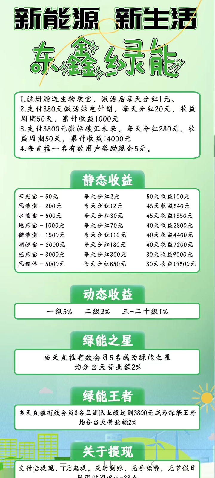 正文 绿电智能 环保,每天都是自动赚模式 首码空投 V评论者 /昨天/6阅读/0评论 0409 首码零撸,东鑫绿能送888元生物质保,自动赚模式,每日赚点零花钱,而且不需要任何手工操作,看懂就干。东鑫绿能亮点:1.绿色环保,每天都是自动赚模式2。直推一人最低就有奖励75元3。所有收益满1元即可提现,无手续费4。百度天眼可查,长久稳定实体考察报销机票5。零门槛加入绿电计划,每天最低收2106。东鑫绿能是上市公司靠谱项目长久稳定7。每连续签到7天,立马提30元,无上限